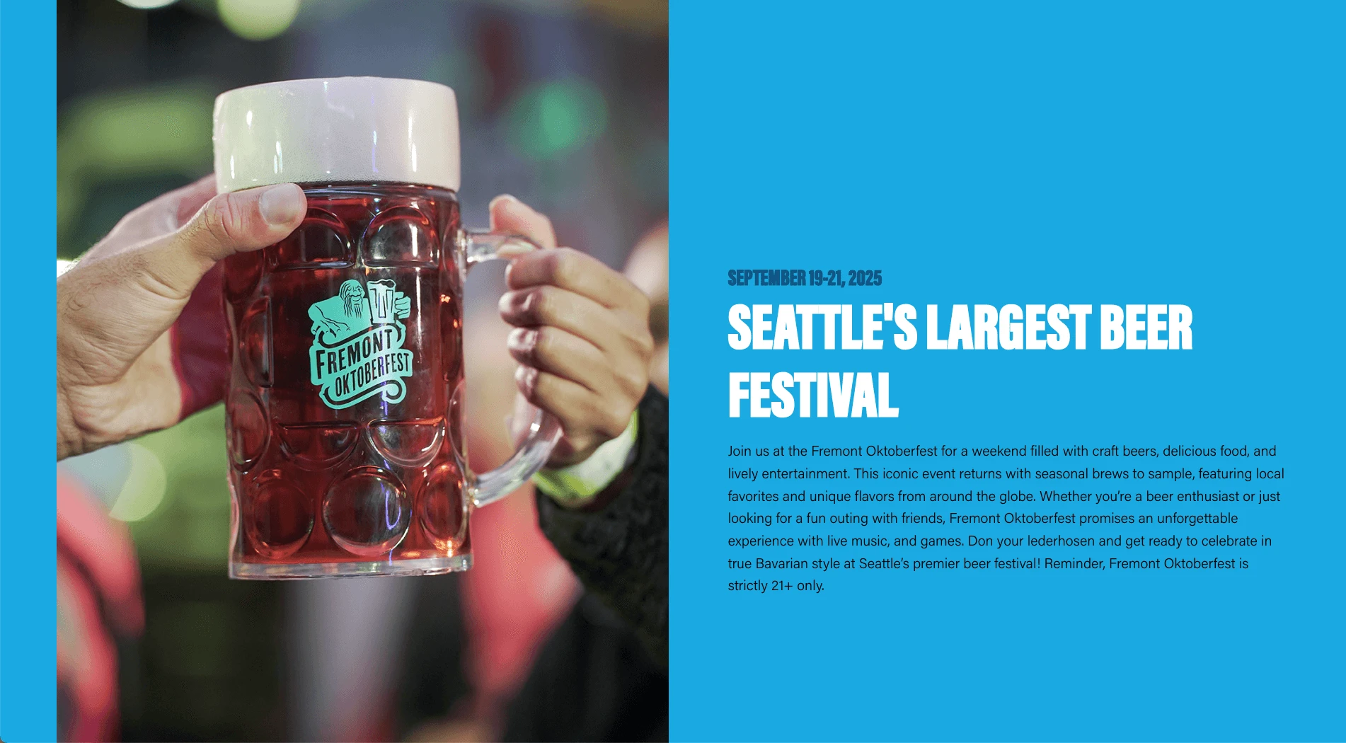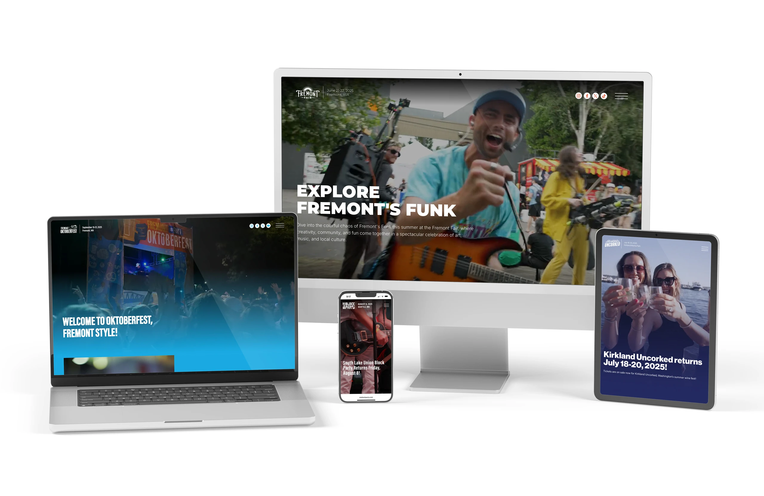 Each site now shares a common framework—ensuring ease of maintenance and streamlined updates—while still feeling tailor-made for the experience it promotes. Whether you’re browsing beer selections at Fremont Oktoberfest, checking out parade routes at the Fremont Fair, or planning a wine tasting weekend at Kirkland Uncorked, the experience is seamless, on-brand, and built to scale.