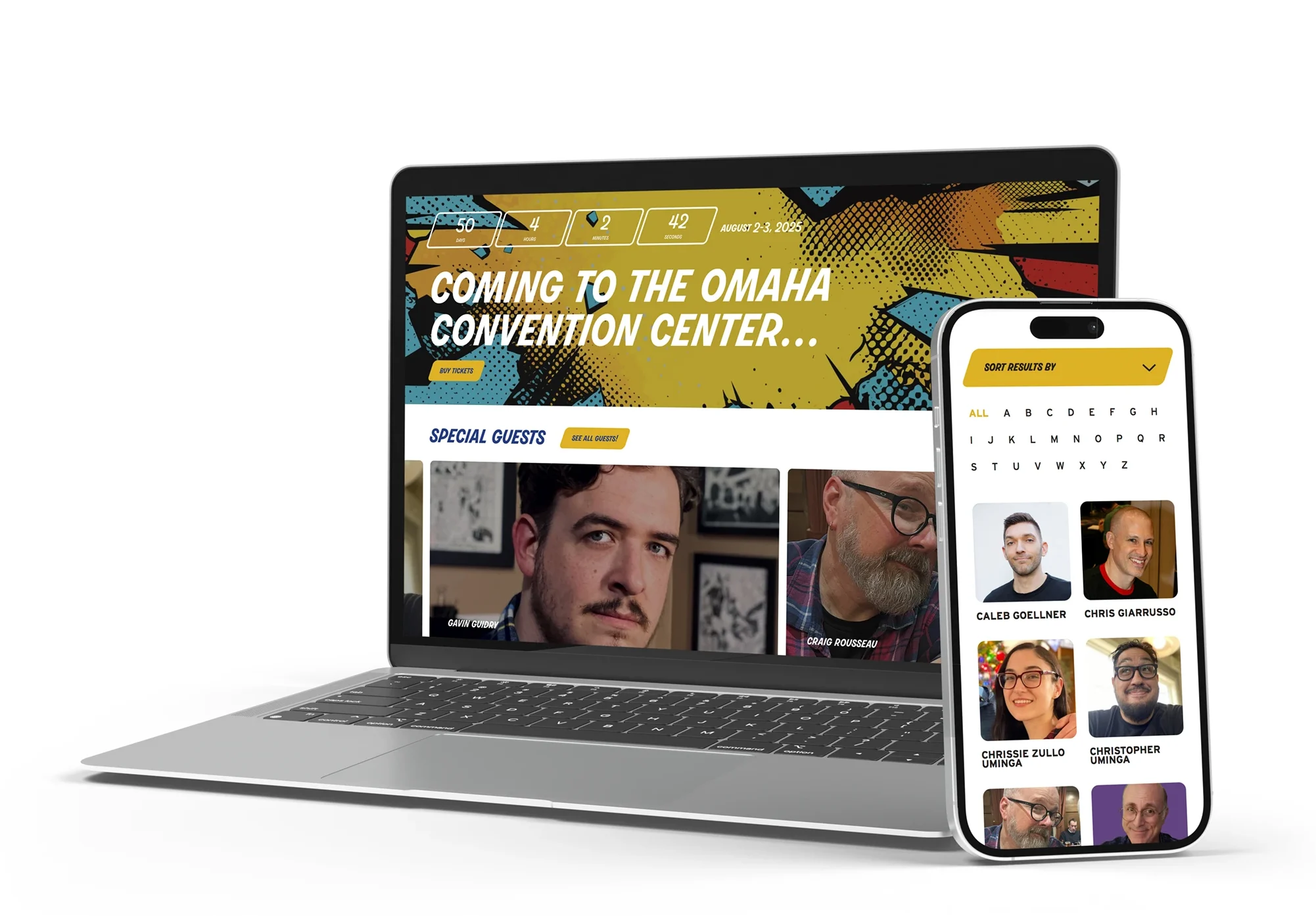 Our team designed a fan-centric site that acts as the event’s digital headquarters. With intuitive navigation, dynamic content pages (Guests, Exhibitors, Artist Alley), show maps, merch sections, and a schedule module, it serves diverse attendees—from first-timers to collectors.